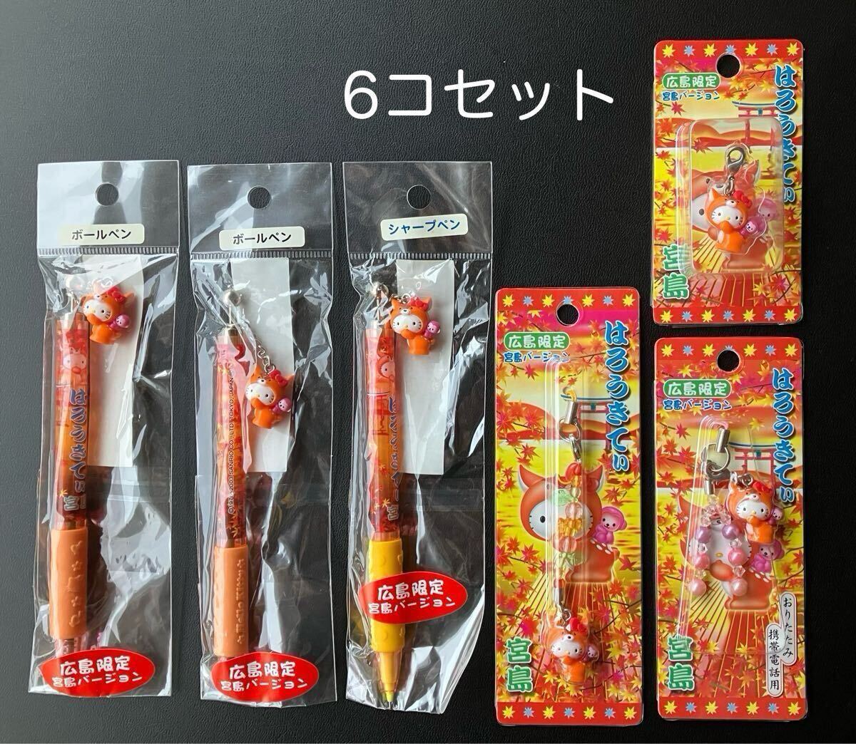 > ご当地キティ【広島 宮島 シカ もみじ】2003 6点セット ハローキティ ご当地ハローキティ ファスナーマスコット ボールペン Sanrio kitty
