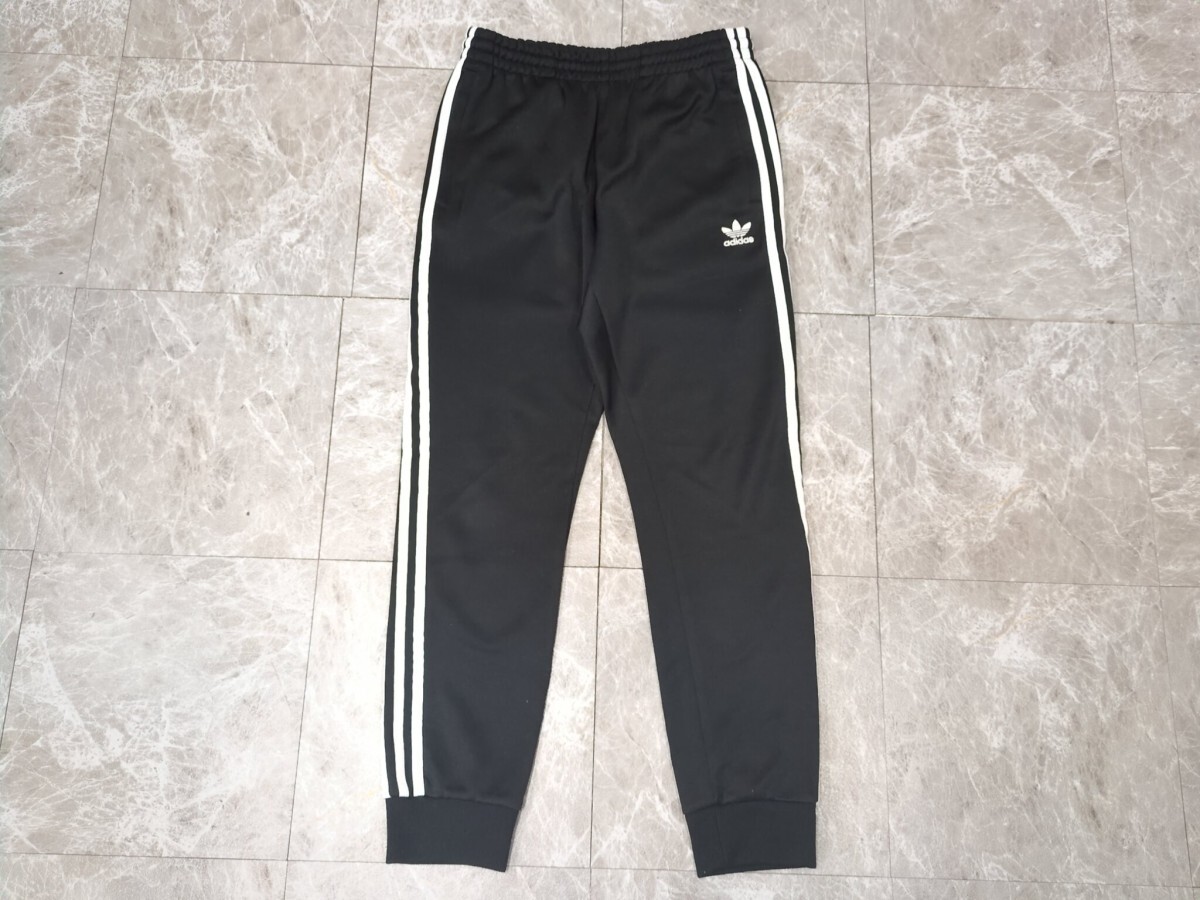 - 9.adidas アディダス ジャージ トラック ジョガー パンツ テーパード 三つ葉ロゴ スリーストライプ メンズL 黒白 x401