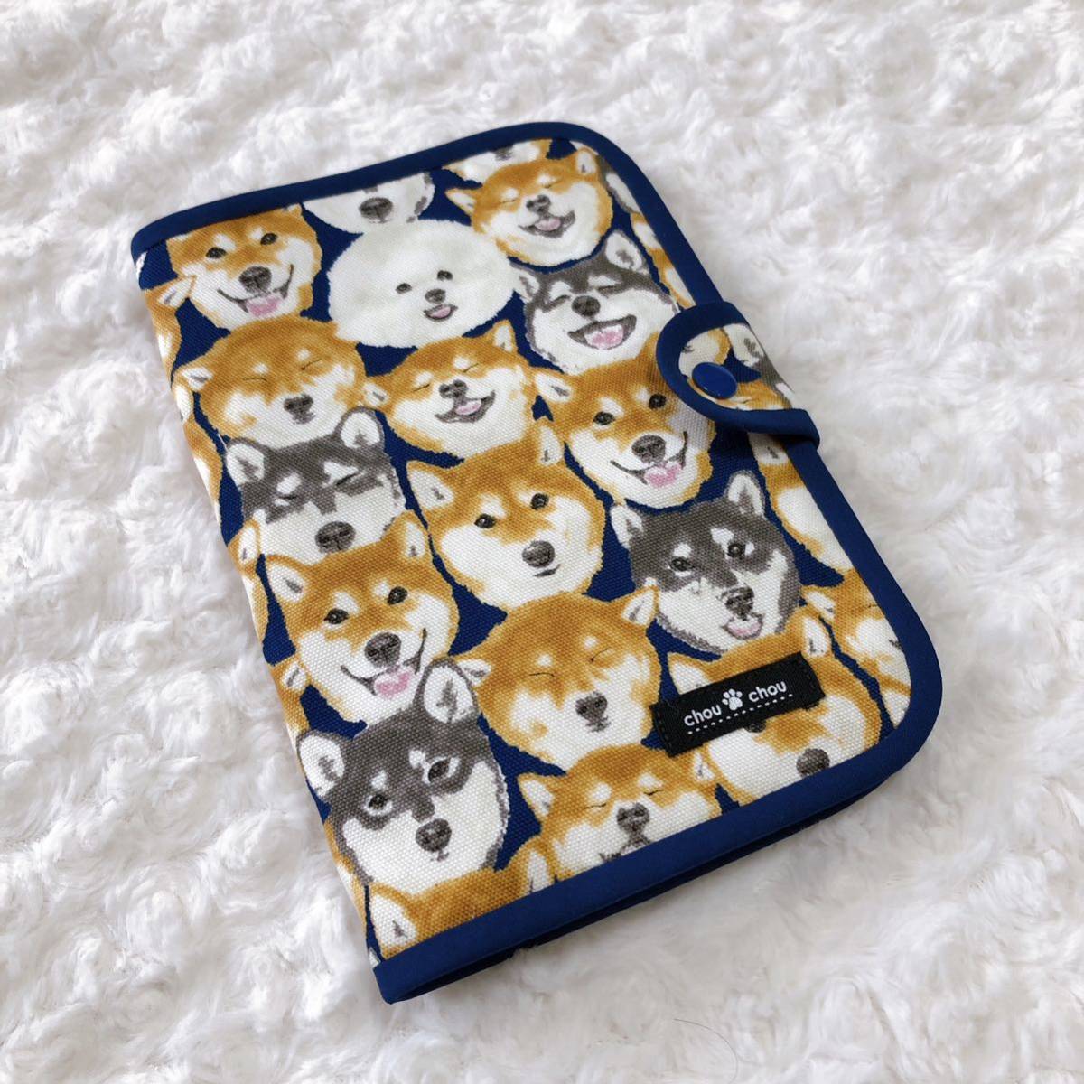 - 送料込み! 可愛い ほぼ柴犬たま~にビションフリーゼ柄 紺 お薬手帳&診察券ケース 通帳ケース 再販8