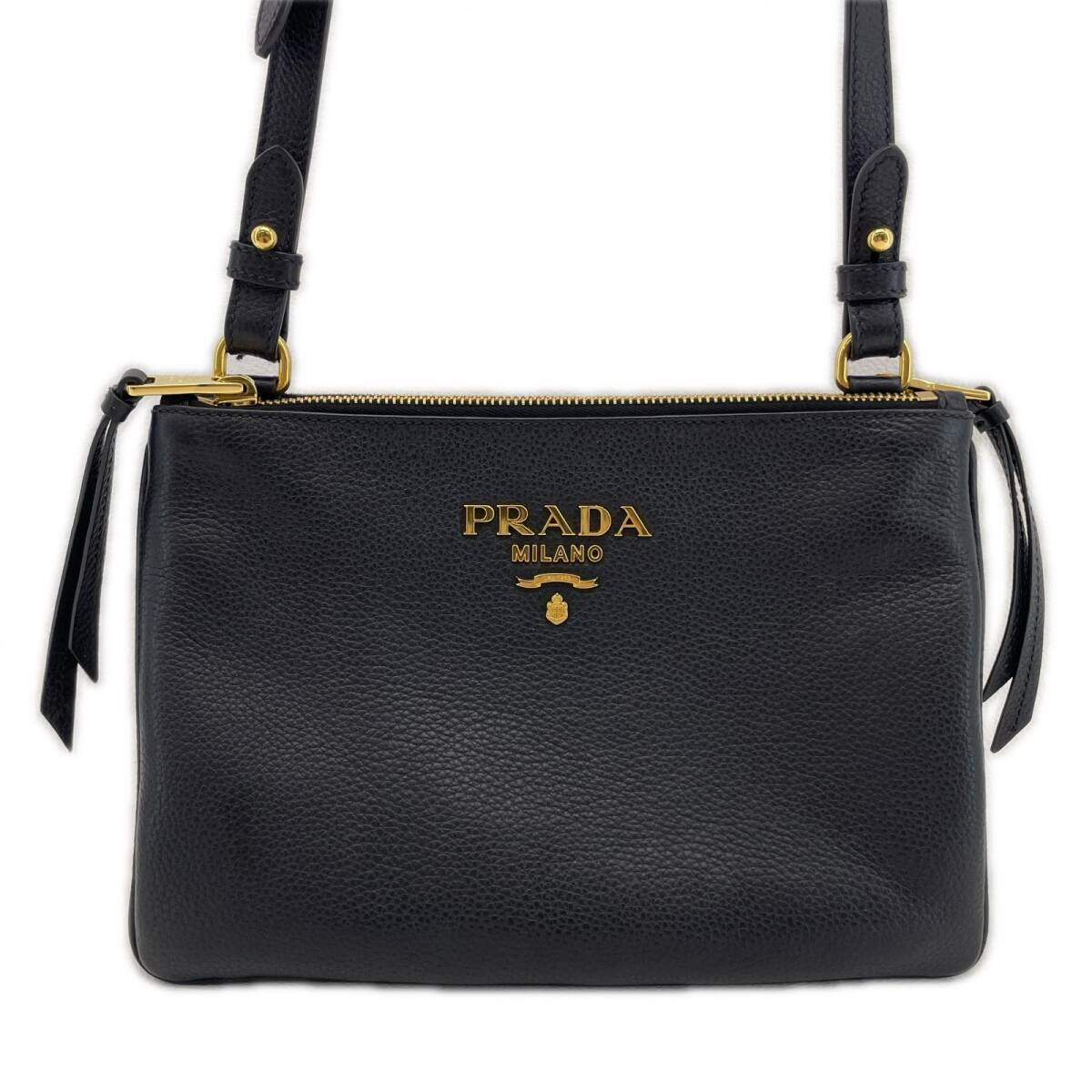 - 美品 プラダ ショルダーバッグ サコッシュ 1BH046 レザー ブラック ダブルポケット PRADA 中古 ◆2008