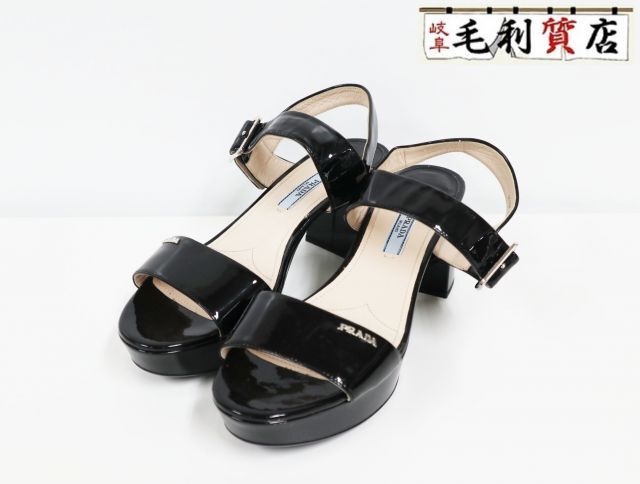 > プラダ PRADA パテント ブラック ロゴ エナメル レザー サイズ 37 23.5cm レディース【中古】ヒール