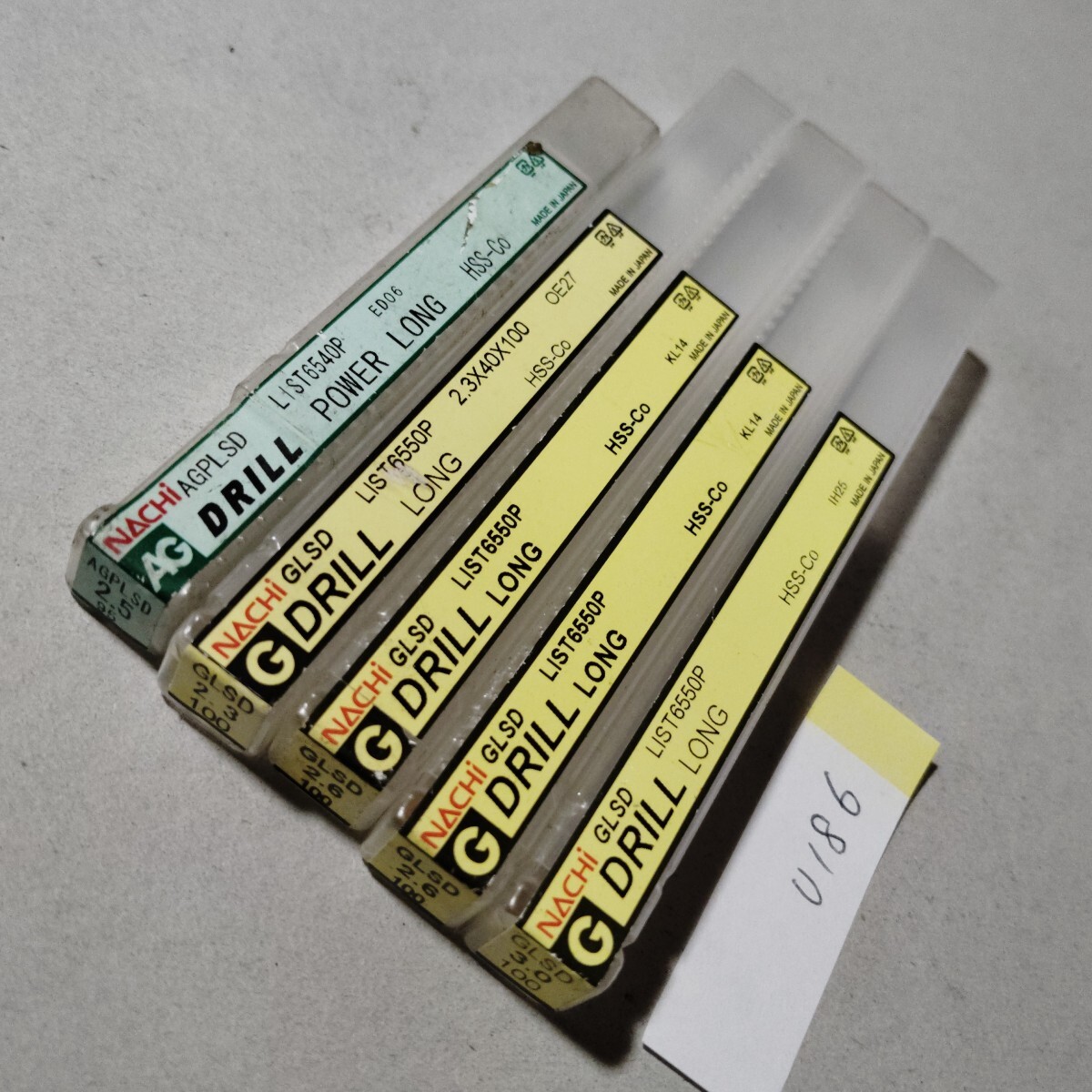 - u186 未使用品 ロングドリル Φ2.3 Φ2.5 Φ2.6 Φ3.0 コーティングドリル ナチ製 5本セット 切削工具 旋盤 フライス盤