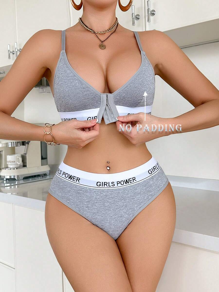 - インティメート ブラジャー ショーツ セット レター プリント ワイヤレスブラセット フロントクロージャー (女性用)
