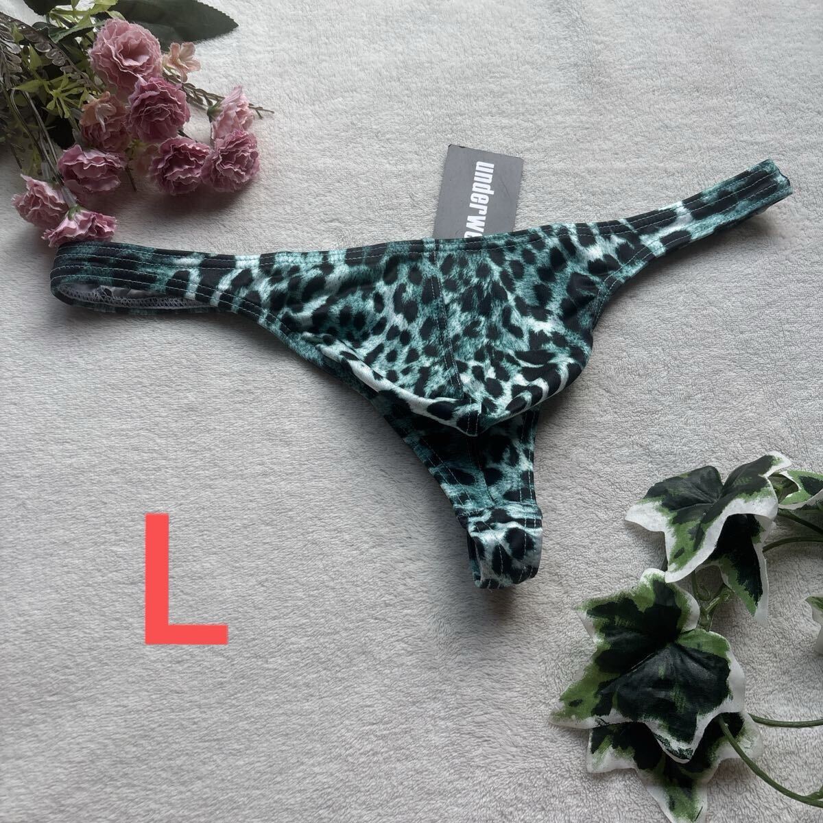 - 新品 メンズ Lサイズ 触り心地超いい グリーン 豹柄 アニマル ぴったり もっこり Tバック ビキニ ブリーフ パンツ ショーツ