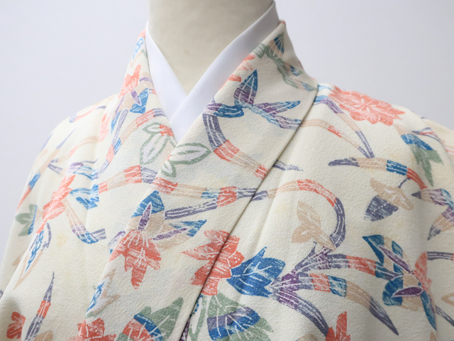 - 《京都一輝堂》【着物】小紋 花植物文 身丈約157cm 裄丈約64cm 24z-5265