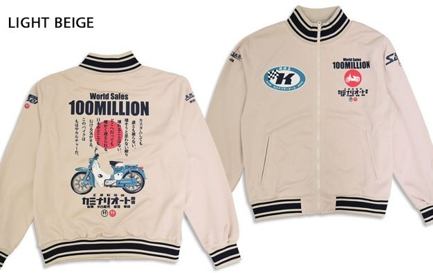 - 「1億台」ジップジャージ ◆カミナリ ライトベージュ Lサイズ 大排気量 KJS-1800 雷 エフ商会 昭和 レトロ スーパーカブ トラックジャケッ
