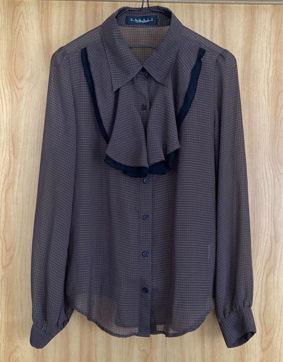- ★未使用 超美品★ 上質シフォン シアー ブラウン レトロ フリル ブラウス