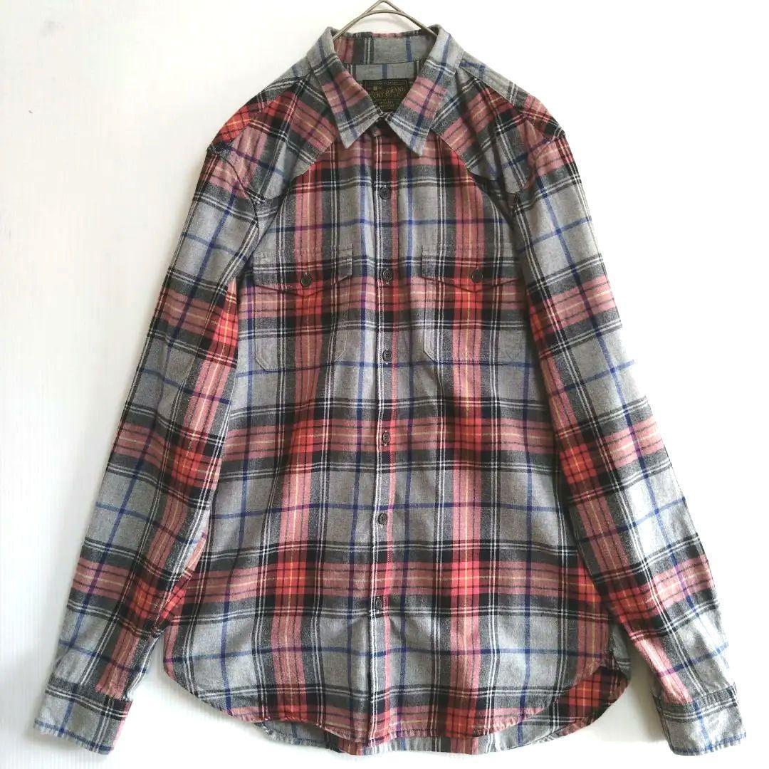- 2709 LUCKY BRAND 長袖チェックシャツ Mサイズ US古着 グレー