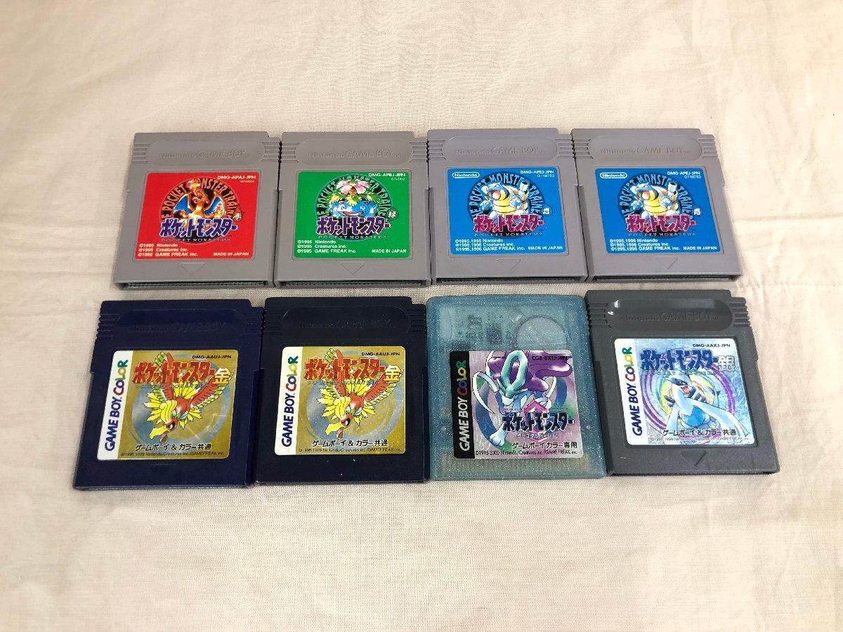 - GB/GBカラー ポケットモンスター 赤/緑/青×2/金×2/銀/クリスタルバージョン まとめて8本 ※起動確認済み (店番:060102)