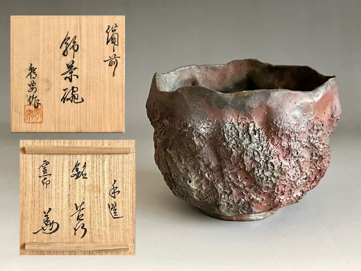 - 花房秀安 備前 手造 飾茶碗 銘 岩竹 茶碗 茶道具