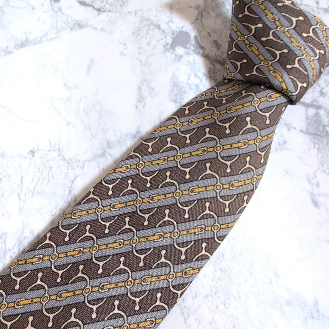 - 【極美品】Herms エルメス ネクタイ チェーン 総柄 シルク