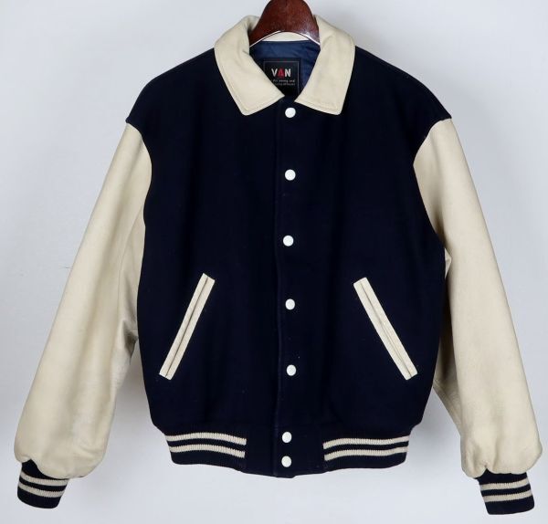 > VAN stadium jumper jacket blouson size M JW-15502 ヴァン 袖レザー 牛革 スタジャン ブルゾン b9862