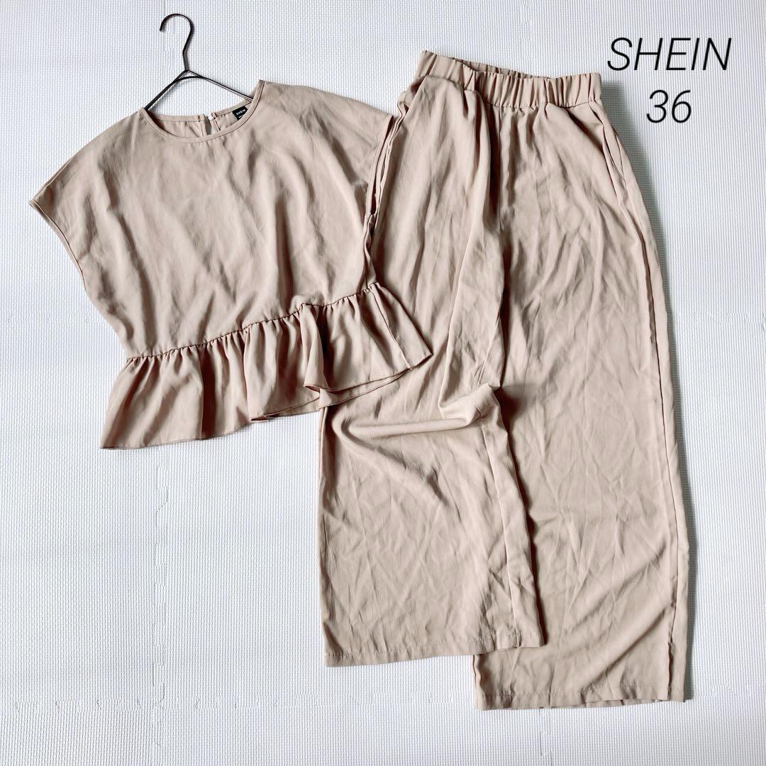 - 良品シーイン SHEIN パンツセットアップ 36 ベージュ系 薄手 総ゴム