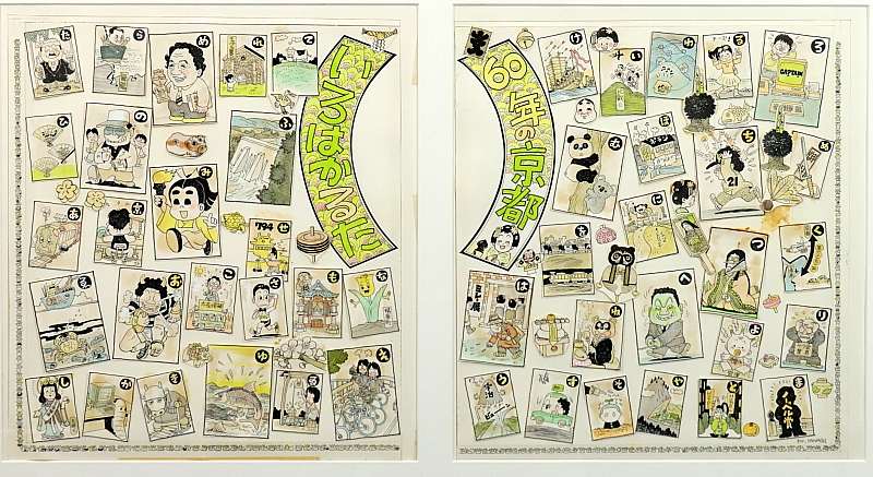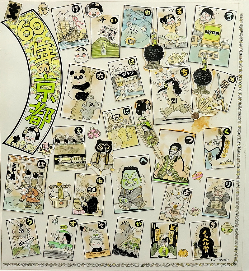 - 11157■ 【真作】原画「昭和60年の京都いろはかるた」 読売新聞京都支局36人考案 YANAGI 新聞原稿 原画 額装