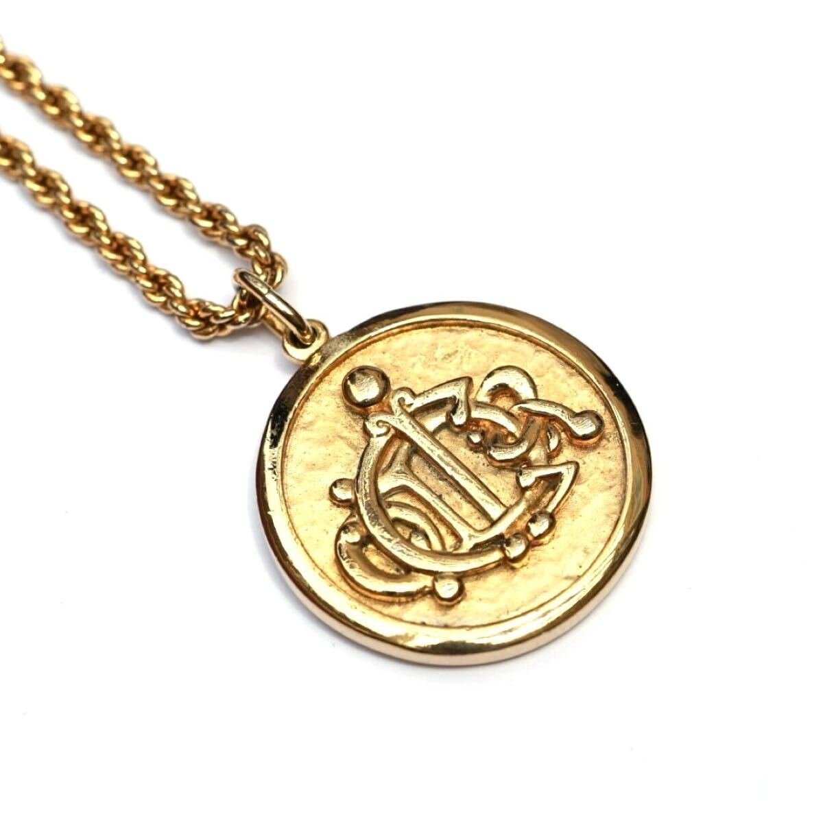- クリスチャン ディオール ネックレス ゴールド メダル ロゴ アクセサリー ペンダント チャーム Christian Dior