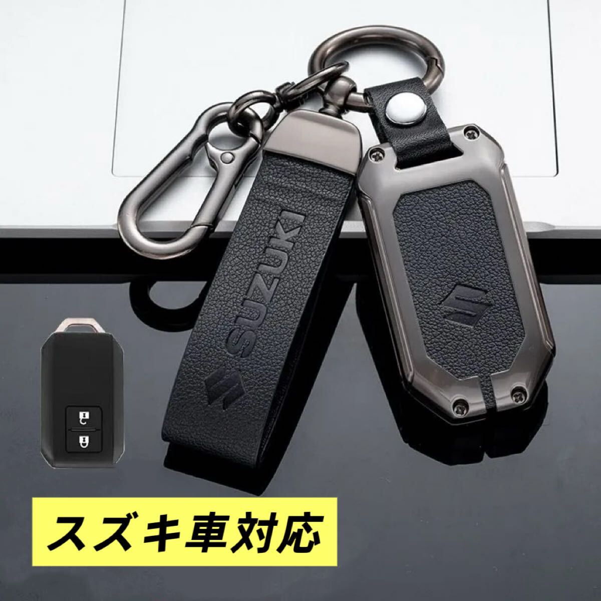 - 車 スマートキーケース ブラック革製 ジムニー ワゴンR ハスラー スイフト