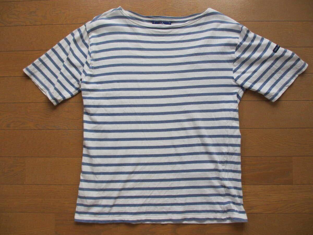 > 美品 ユーズド SAINT JAMES セントジェームス ボーダー 希少 半袖 カットソー 白 水色 限定 フランス ルミノア ボートネック 入手困難