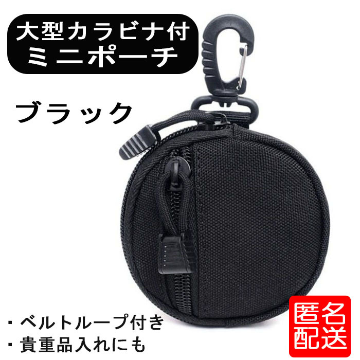 - ポーチ メンズ カラビナ アウトドア 小物入れ ブラック 丸形 ベルトループ コインケース 貴重品 キャンプ サバイバル キーケース