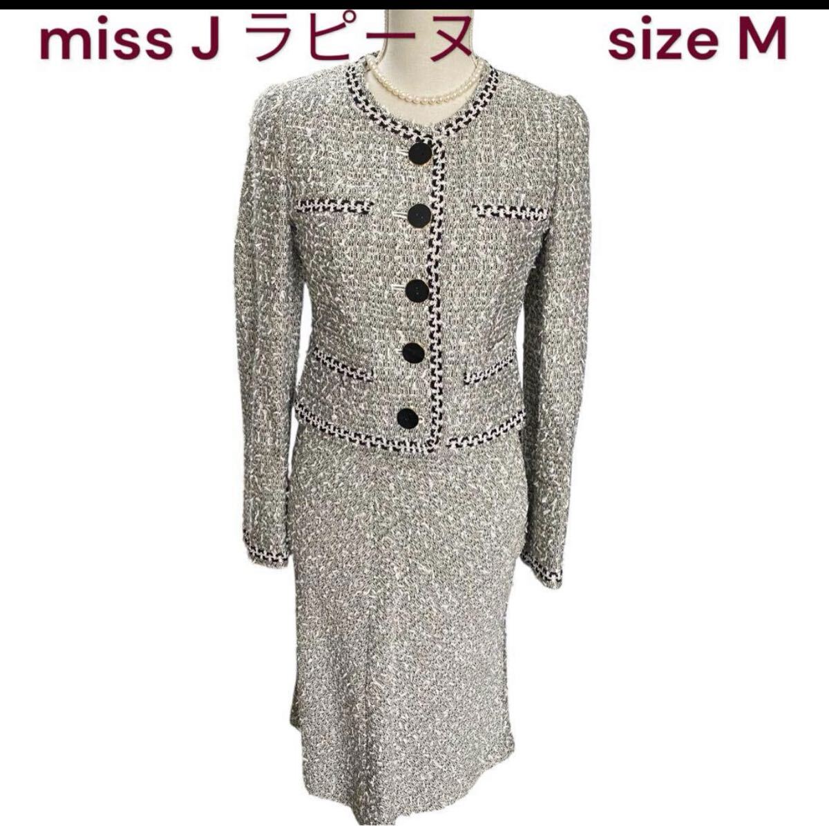 - 美品 ミスジェイ ラピーヌ ノーカラー ツイード セットアップ スーツ M、9号 miss J ラピーヌ