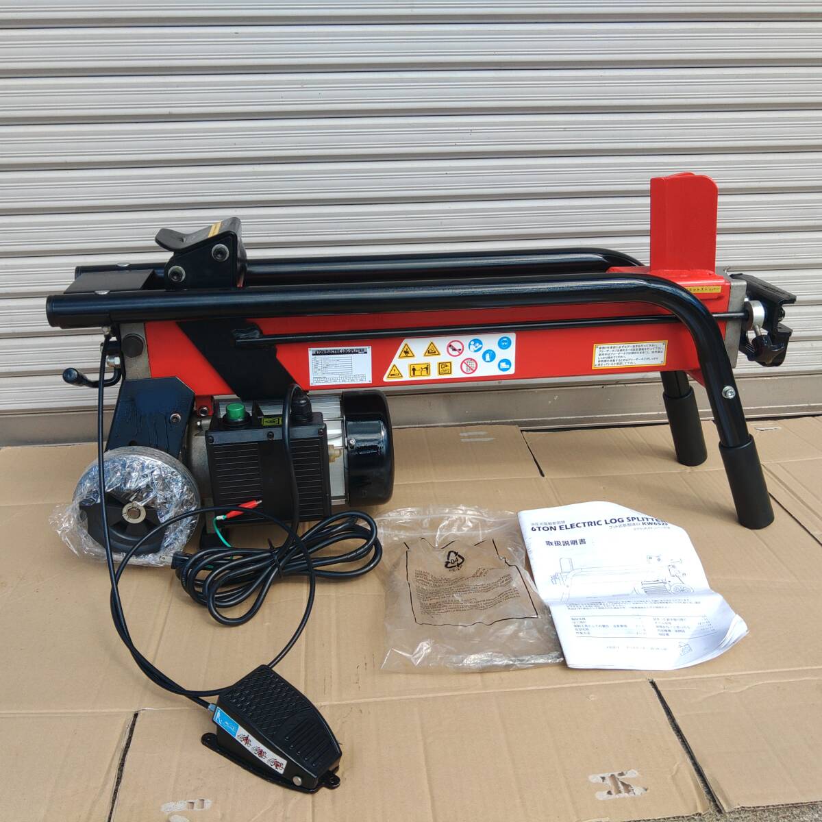 > 【未使用 国内メーカー】 電動100v 強力油圧シリンダー 薪割り機 足踏みペダル電源 薪ストーブ 移動楽なキャスター付き