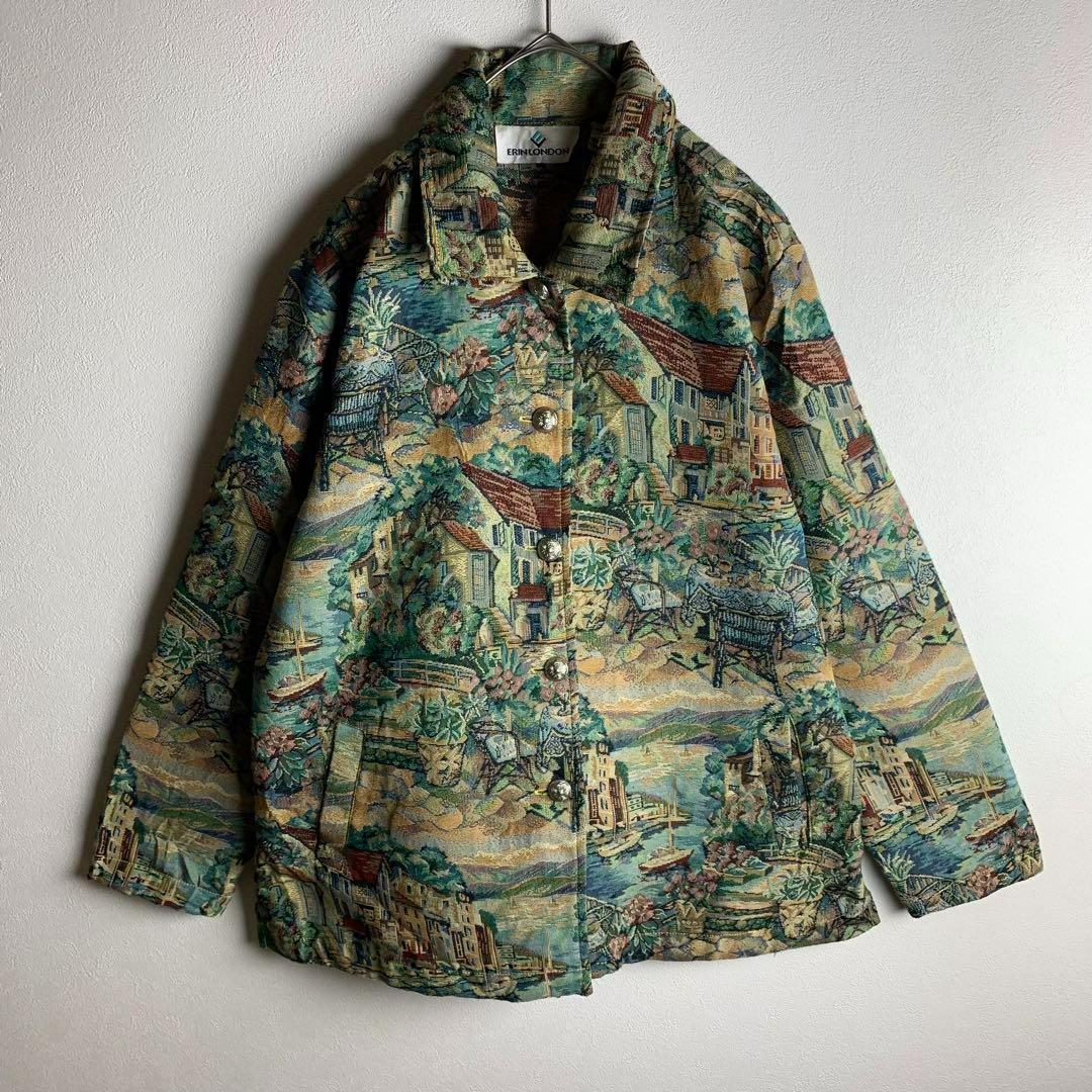 > 長袖シャツ シャツ ゴブラン織 風景デザイン 総柄 希少 レトロボタン メンズ レディース ユニセックス お洒落 カジュアル 古着