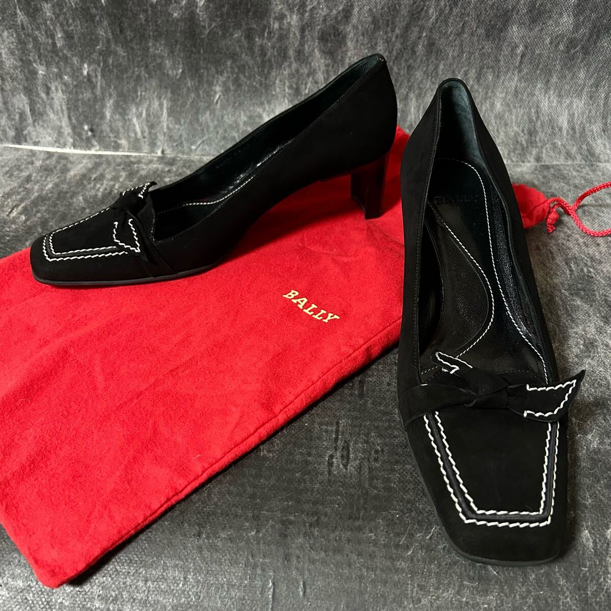 > 【新品同様/¥49000】Bally バリー スエードパンプス リボンパンプス 381/2 24.5cm相当 ブラック レザー *EU
