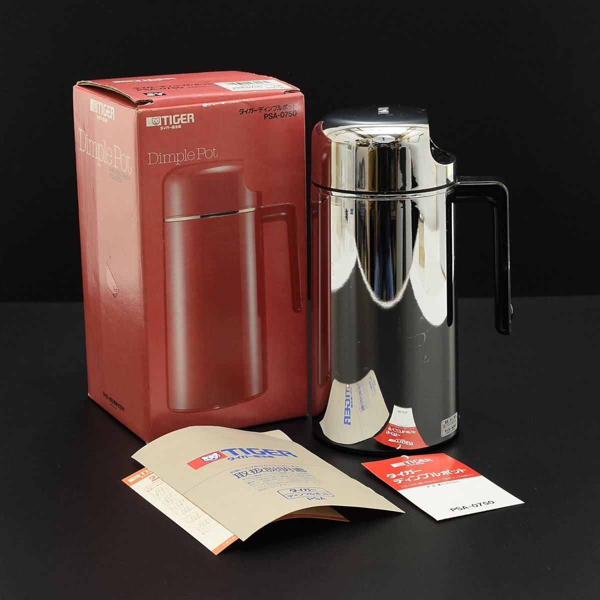 > ◎531218 昭和レトロ 未使用品 TIGER タイガー 魔法瓶 ディンプルポット クローム 容量0.74L