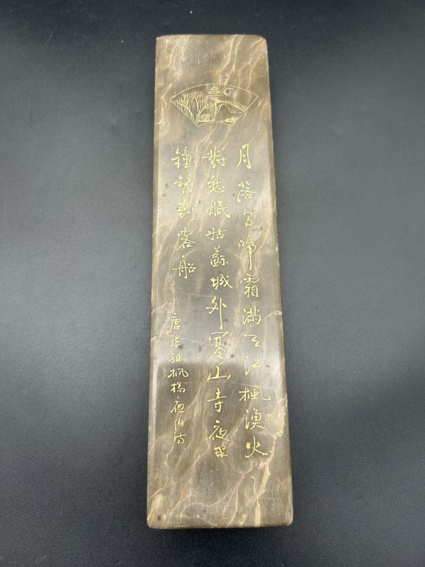 - 【S9-27】中国美術 唐物 大理石 彫刻 詩 在銘 旧家整理品