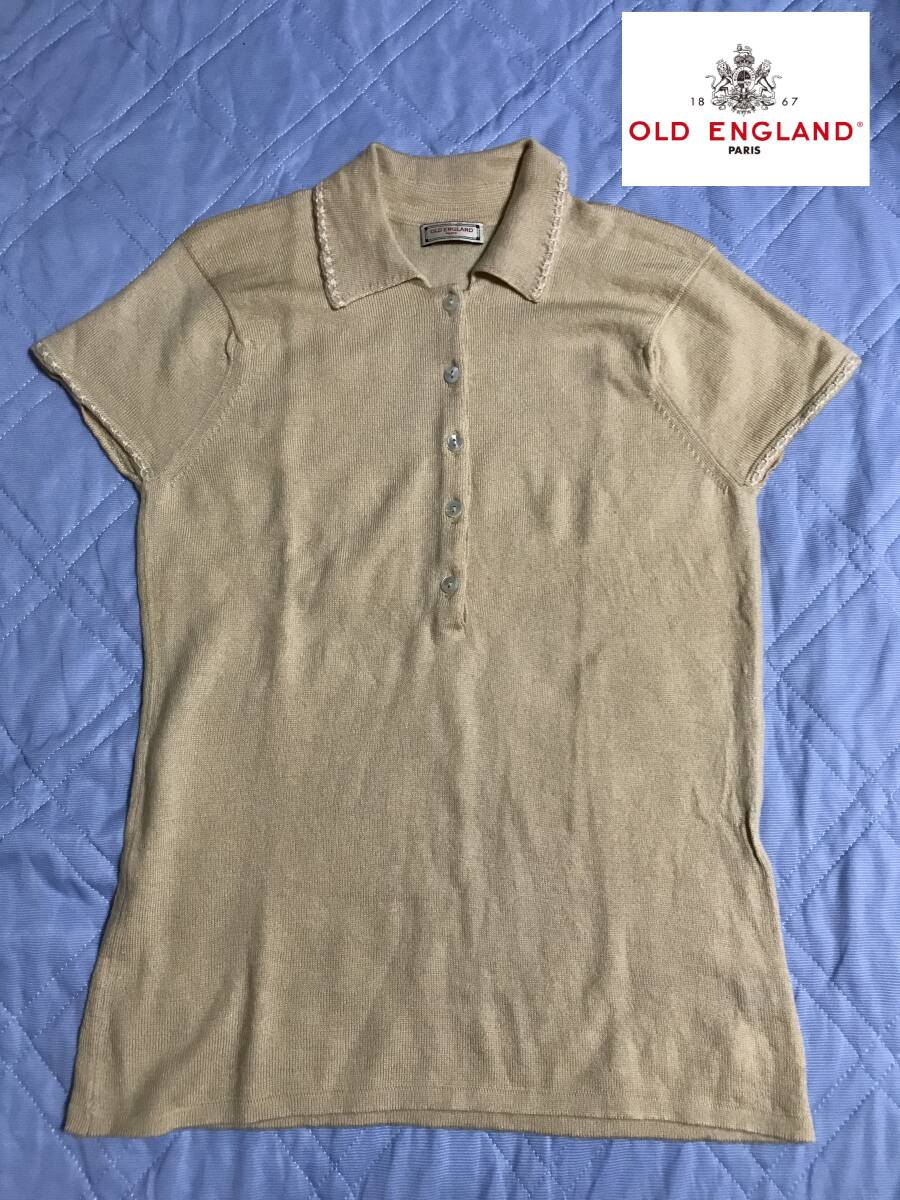 - オールドイングランド ベージュ色半袖襟付き毛70%絹30%ニット t168