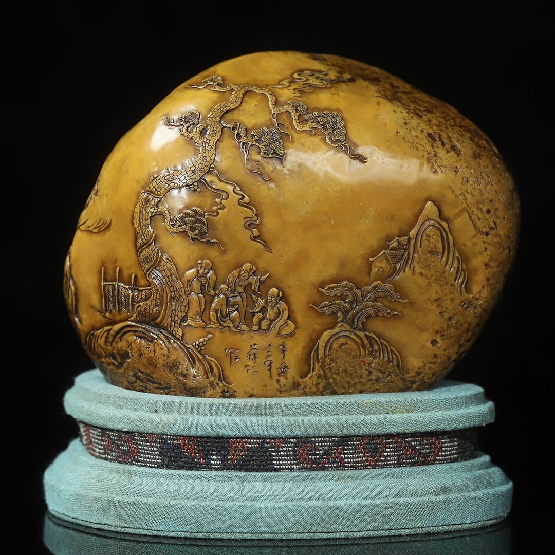 - 旧蔵 【清代篆刻家 將仁】寿山石 田黄【松下聚賢】薄意人物物語紋 印鑑 置物 天然石 手彫 篆刻 古印材 極細工 中国古玩 骨董品 古美味 210