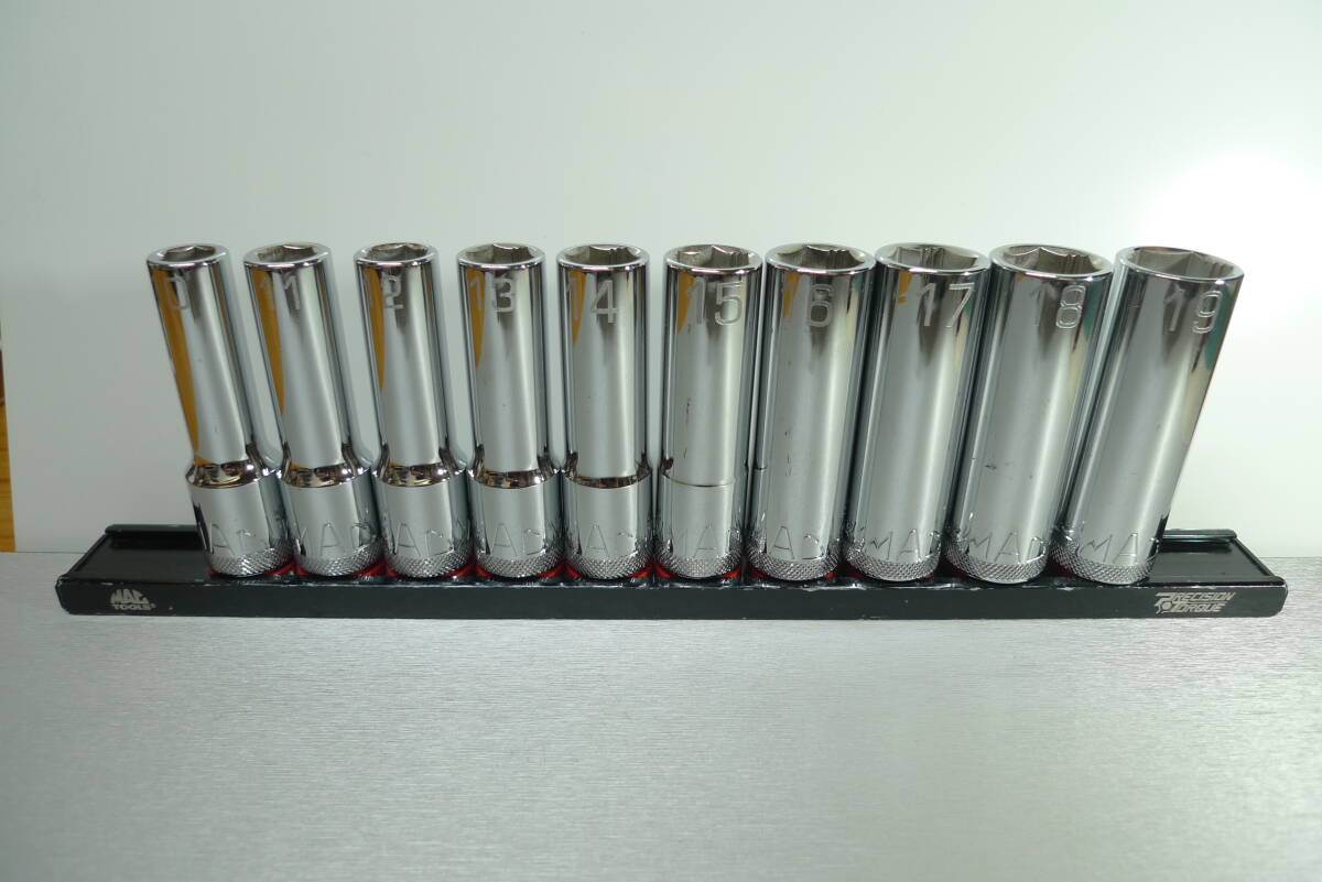 > MAC 1/2 12.7 PRECISION TORQUE VD6 10mm~19mm ディープ ソケット 10本 ソケットケース付 中古品 MACTOOLS マックツールズ マックツール