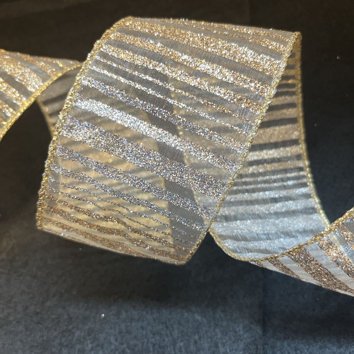 - リボン切り売り 1.5m クリスマスリボン 3色 金色ストライプ グリッター