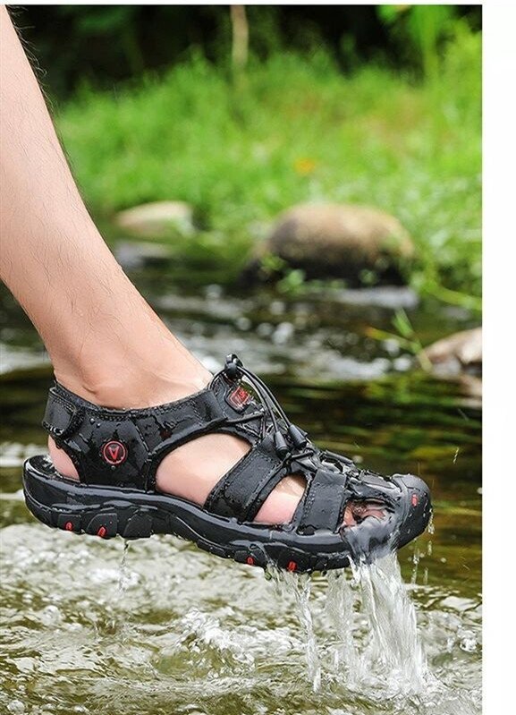 - LX-92362 43/黒 38-47選 安い 牛革 軽量 夏 滑り止め 快適 通気性 サンダル メンズ スポーツ ビーチサンダル スリッパ アウトドア