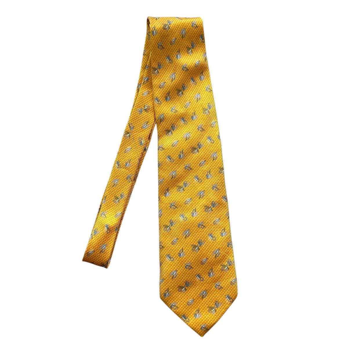 - USA製 90’s〜 CREMIEUX ネクタイ イエロー ルアー 総柄 シルク アメリカ製 1990年代