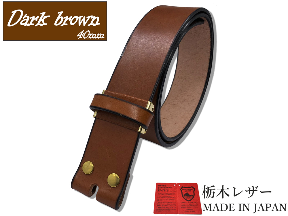 - 新品 栃木レザー カジュアルベルト Lサイズ メンズ 無地 帯のみ 本革 交換用 取り換え 牛革 40mm 茶色 チョコ 金ホック W041DBLG