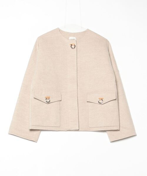 - 「HERMES」 ノーカラージャケット 36 ベージュ レディース