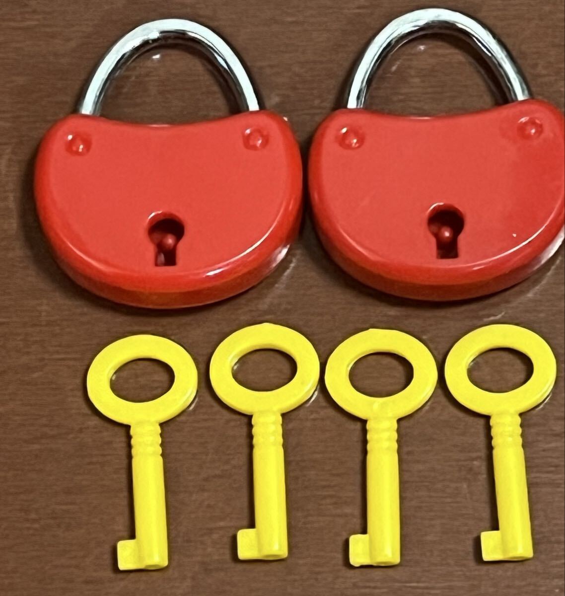 - 鍵とロックの知育玩具と考えられます。子供の指先の運動能力や論理的思考力を育むことを目的とした知育玩具です。鍵としても使えます。