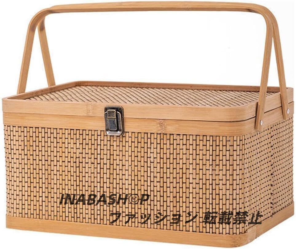 - 竹籠収納ケース竹ポータブル収納バスケットピクニックバスケット編まれたスナックフルーツバスケット天然素材ふた付き(32*22*16cm)