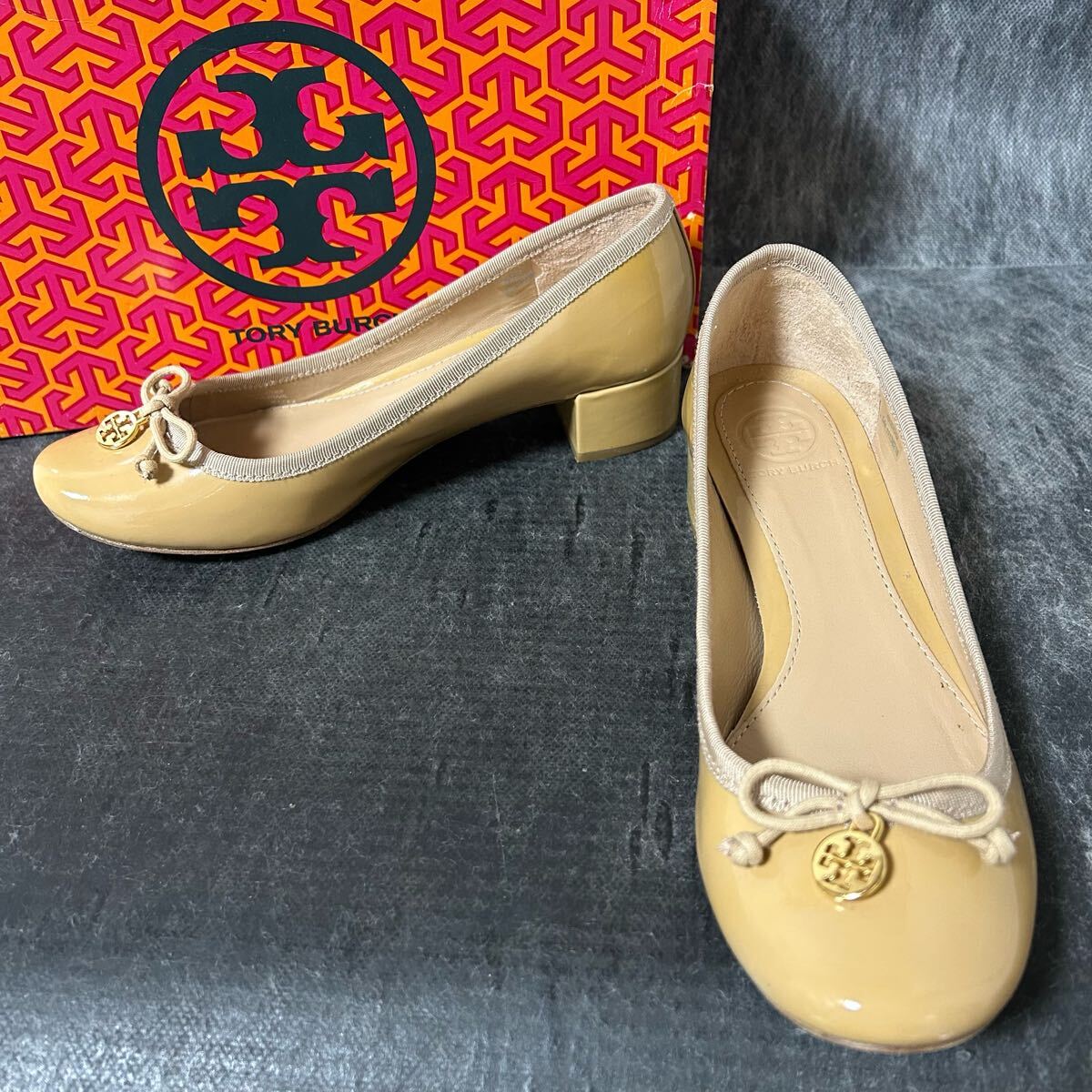 - TORY BURCH トリーバーチ エナメルパンプス フラットシューズ ヒール 51/2M 22.5cm相当 ベージュ *EY