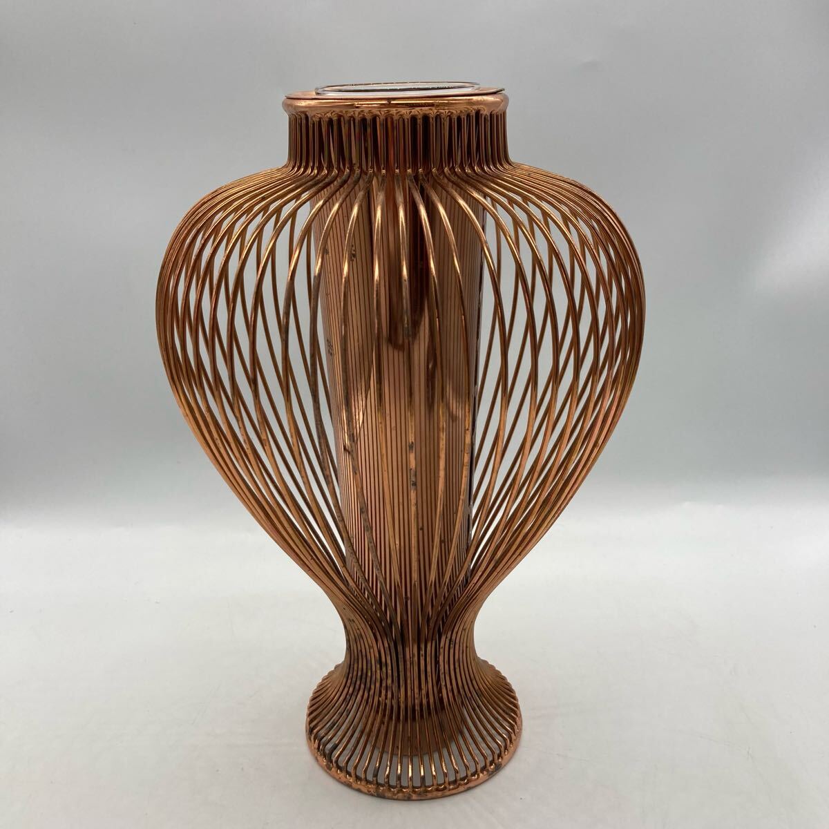 - M1014701N 銅製 花籠 花瓶 花入 インテリア ブロンズ 一輪挿し フラワーベース デザイン花瓶 アンティーク 当時物 中古品 現状品