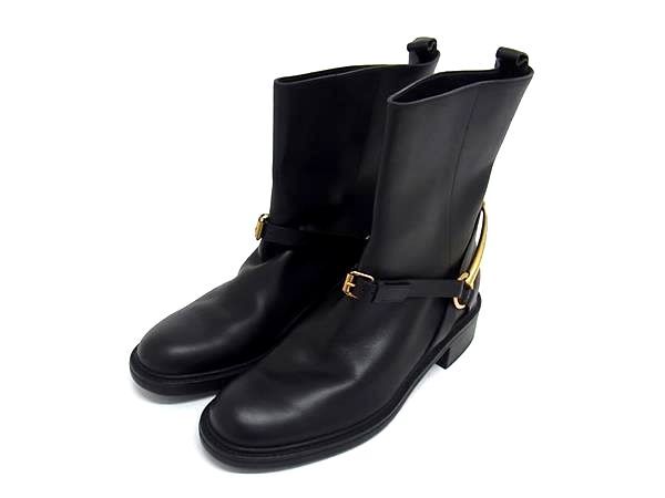 > ■極美品■ GUCCI グッチ 353792 ホースビット レザー ブーツ 表記サイズ 36 1/2 (約23.5cm) 靴 シューズ ブラック系 FU2144