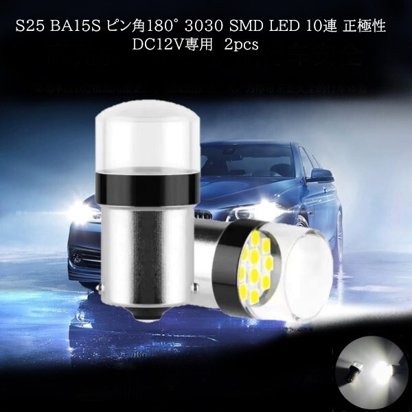 > 【匿名配送】 S25 BA15S ピン角180° 3030 SMD LED 10連 ホワイト 2個セット 正極性