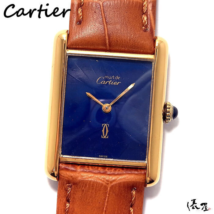 > 【カルティエ】マストタンク LM 手巻き ラピス コンプリート済 極美品 ヴィンテージ メンズ 時計 Cartier Tank 俵屋