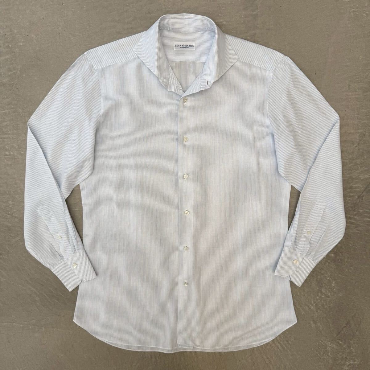 - 【美品】 ルカアヴィタービレ◆シャツ コットン リネン ホワイト ストライプ LUCA AVITABILE ドレスシャツ コットンシャツ ビジネスシャツ