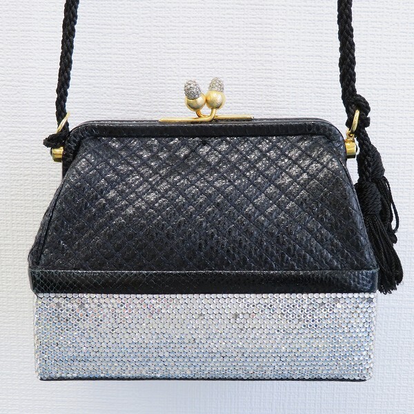 【ブランド】ジュディスリーバー JUDITH LEIBER【アイテム】パーティーバッグ【表記サイズ】-【実寸】縦:約 12cm横:約 15.5cmマチ:約 5.5cmハンドルドロップ:約 51cm【状態】やや傷や汚れあり【備考】コーム・ミラー付属。一部ラインストーンのくすみが見られる箇所がございます。(画像参照)【色】ブラック シルバーMIX【素材】レザー★当店の商品はすべてリユースアイテムとなります。特質上、些細なダメージは記載しておりませんので着用に問題のない使用感、着古した雰囲気などはご了承くださいませ。キーワード/アクイール/古着/used/ビンテージ/ヴィンテージ/コレクション/ショルダーバッグ/