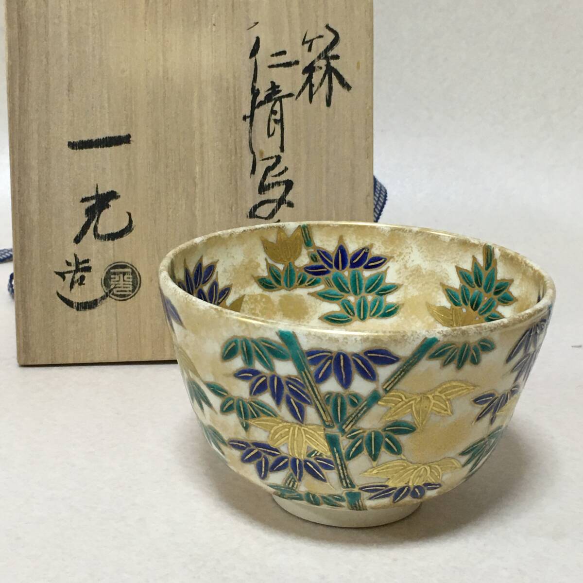 - E839 上山一光 仁清写 竹林 茶碗 共箱 茶道具 京焼