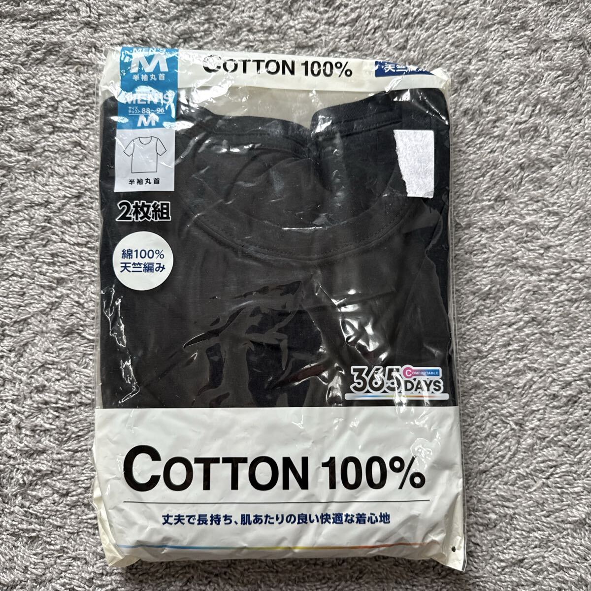 - メンズ半袖丸首天竺編みコットン100%インナーTシャツ黒2枚組M★ゆうパケット配送可能★新品34