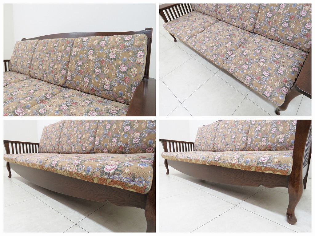 > コロニアルデザイン 3人掛けソファ クラシカル ウッドフレーム ベンチ検葉山ガーデン三越ブルージュカリモクダニエルキツツキ