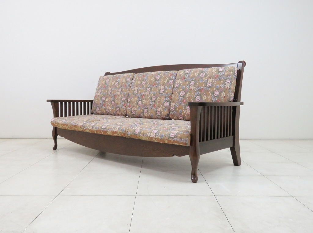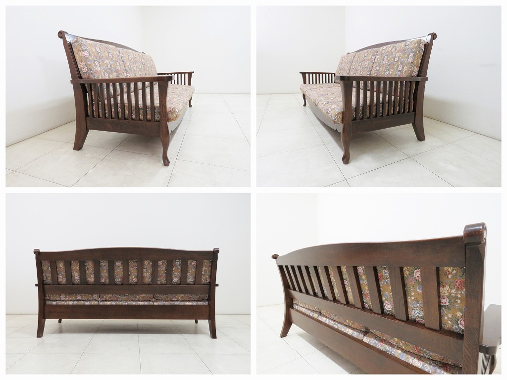 - コロニアルデザイン 3人掛けソファ クラシカル ウッドフレーム ベンチ検葉山ガーデン三越ブルージュカリモクダニエルキツツキ