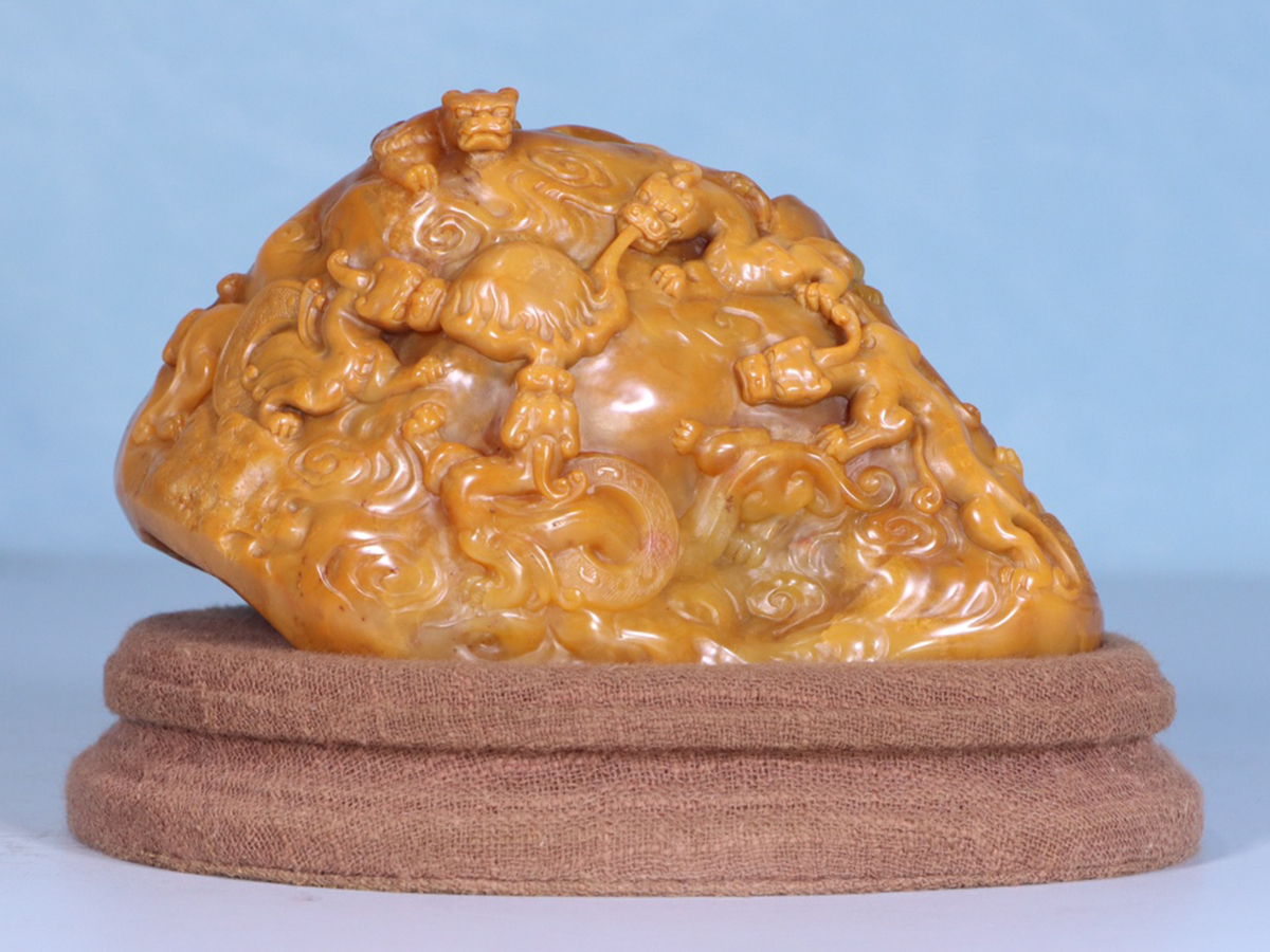 - ▽鴻▽清時代 寿山田黄石彫 五龍戯珠置物 共箱 時代物 中国古美術 骨董品